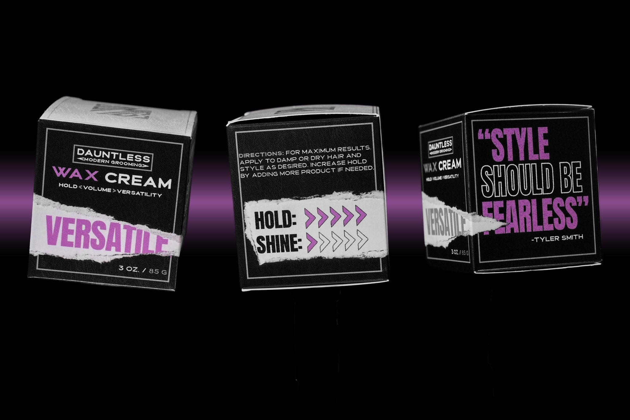 The Dauntless Wax Cream is the "Swiss Army Knife" of hair products. It can be used as a pre styler, as a post styler, and even as a women's hair wax. It can be used for any style you want to add extra hold, natural texture, and all day endurance to.