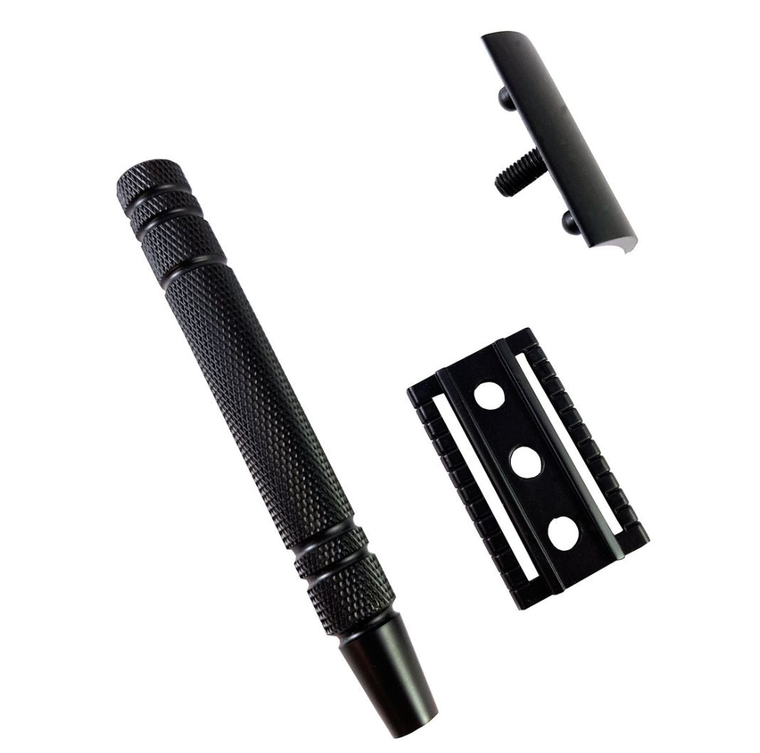 ✔️ Three-piece razor – easy blade change with a detachable head ✔️ Non-slip, knurled handle – ensures a secure grip, even with wet hands ✔️ High-quality matte black coating – stylish, durable, and rust-resistant